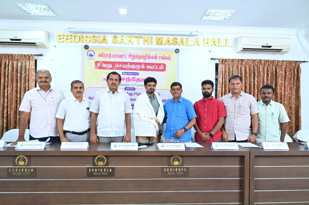 18.08.2025 : திங்கட்கிழமை மாலை 6.30மணிக்கு ஈடிசியாவின் 2வது செயற்குழு கூட்டம் கூட்ட தலைவர் திரு.P.கந்தசாமி அவர்கள் தலைமையில் ஈடிசியா அரங்கில் நடைபெற்றது. i2i Foundation Afrea Manager திரு. சி.சந்தோஷ் அவர்கள் சிறப்பு விருந்தினராக கலந்துகொண்டு, “MSME வளர்ச்சிக்கு Flipkart மற்றும் Walmart Vriddhi தளங்களைப் பயன்படுத்துதல்” என்ற தலைப்பில் விளக்கமளித்தார். இக்கூட்டத்தில் ஈடிசியாவின் நிர்வாகக்குழு, செயற்குழு உறுப்பினர்கள், முன்னாள் தலைவர்கள் மற்றும் சங்க உறுப்பினர்கள் கலந்துகொண்டனர்.